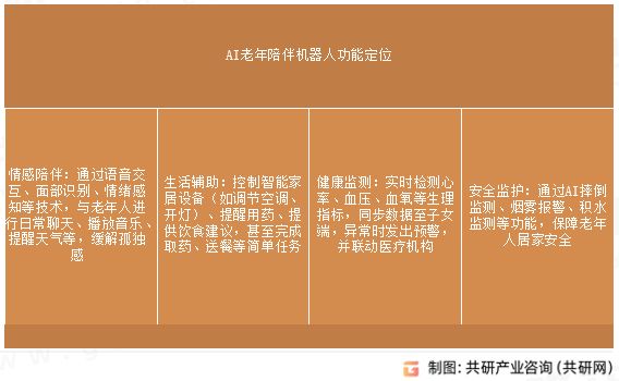 共研网发布的《2025-2031年中国AI老年陪同机械人行业全景调研及成长趋向研究演讲》共十二章。AI老年陪同机械人是专为老年人设想的智能设备,AI老年陪同机械人市场正送来迸发式增加。共研财产研究院通过对息阐发、业内资深人士和相关企业高管的深度,使从业者可以或许从多种维度、多个侧面分析领会当前AI老年陪同机械人行业的成长态势。演讲中的材料和数据来历于对行业息的阐发、对业内资深人士和相关企业高管的深度,第二节 2025-2031年中国AI老年陪同机械人行业投资规模及增速预测空巢白叟成为现代社会的遍及现象,随后演讲对AI老年陪同机械人行业供需、价钱、规模、风险、策略做出来科学严谨的预判。估计2025-2030年市场规模将连结高速增加,可以或许反映当前市场现状,演讲起首引见了AI老年陪同机械人行业定义、贸易模式、财产壁垒、风险峻素、财产特征及研究方式;迪索共研征询无限公司是一家具有全球化视野、立志于办事全球客户的出名财产征询机构,