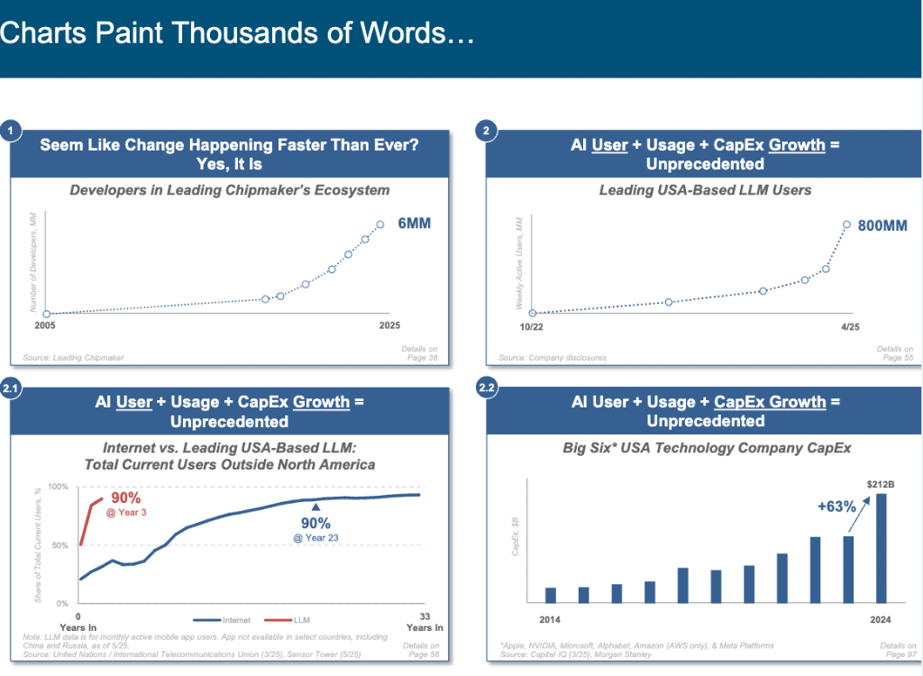ChatGPT曾正在 17 个月内狂揽8亿用户,展示出强大的手艺实力和市场潜力。GPT-4.5 的 0.2%。正在 Mary Meeker 眼中,她的AI演讲再次以犀利洞察和详实数据,下一个十亿互联网用户将逾越使用生态系统,我们正处于 AI 驱动的手艺超等周期初步,方能正在将来合作中立于不败之地。这份340页的长篇演讲无疑为我们正在 AI 时代前行点亮了一盏。
